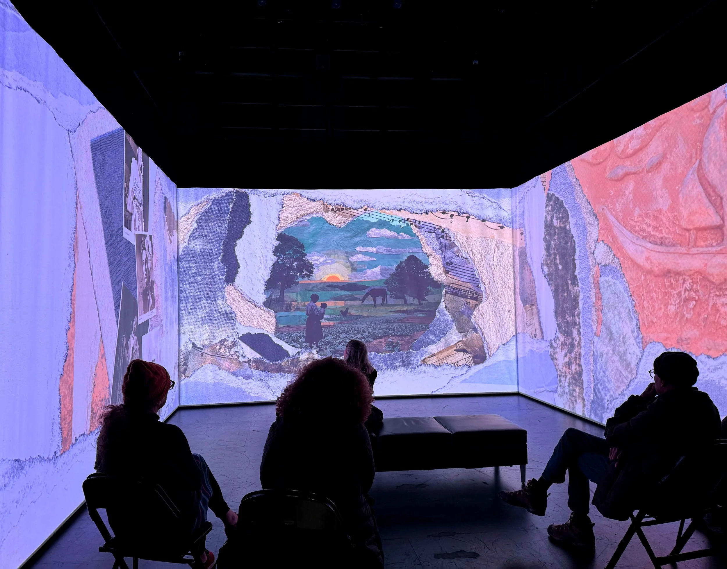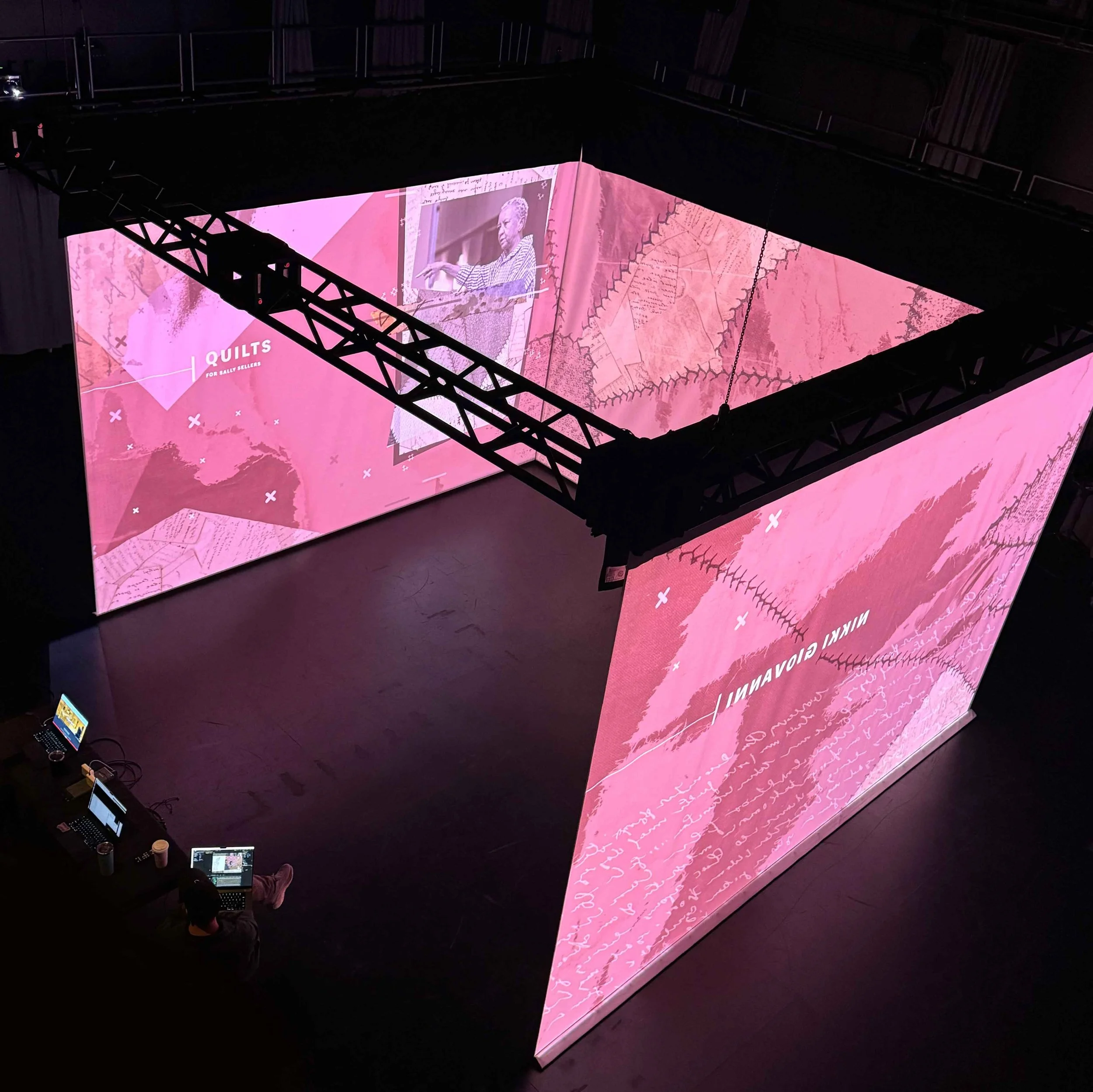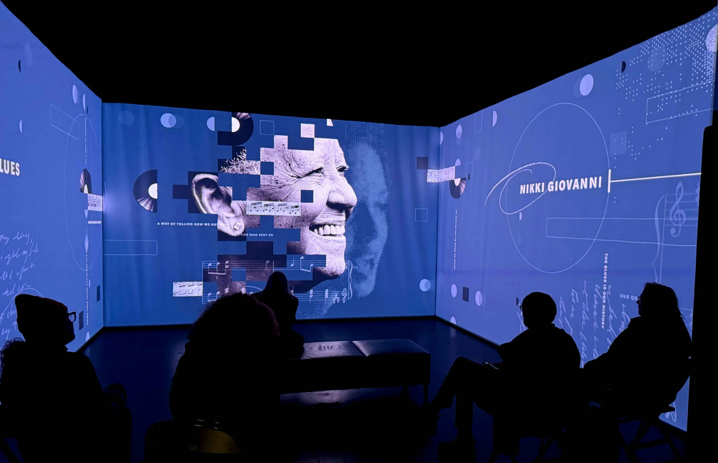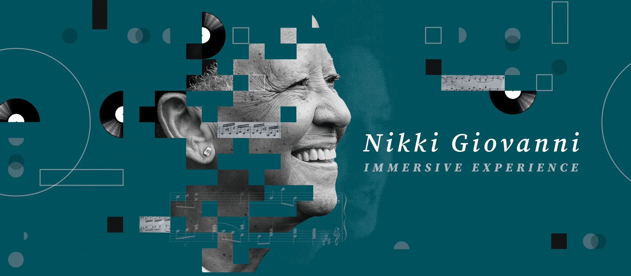 Combining Nikki Giovanni’s poetry (as recorded by Giovanni at different times in her life) with audio soundscapes and motion-graphics projections, this interdisciplinary collaboration among a composer, designers, literary experts, embodied performance artists, and creative technologists creates a multi-sensory experience. Each 3-walled projection aims to capture the essence of Giovanni's poetry, drawing inspiration from its themes, imagery, and rhythmic cadence. Additionally, we used the library's motion capture studios to collaborate with faculty from the School of Performing Arts in developing visual avatars that appear in the final motion graphics. Attendees had the opportunity to engage with the art on a deeper level, allowing themselves to be enveloped by the interplay of sight and sound, word, and image.